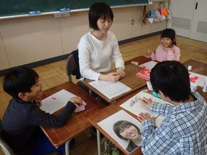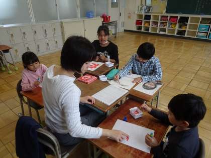 先生の似顔絵を描いたり、掲示物を作ったりしていました。