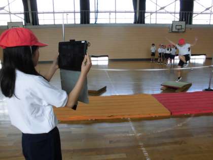 体育で高跳びを行いました。跳び方のポイントを確認してから練習をし、タブレットで撮影しました。動画で見ると、良い点や修正点が明確になり、グループで教え合ったり、自分のフォームを客観的に見ることができました。次時の課題も明確にすることができました。