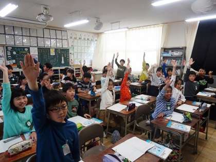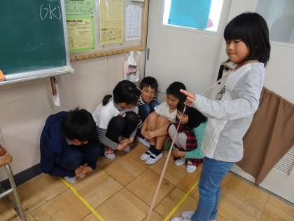 小学校5年生が何人入るか、予想を立てて、実験をしていました。