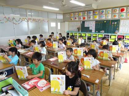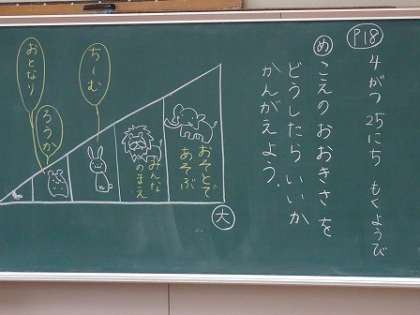 声の大きさを考えて、本を読む学習をしていました。