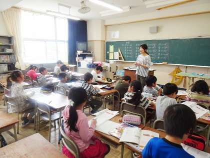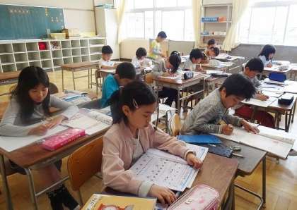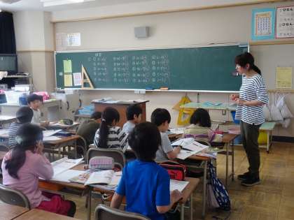 2つの教室に分かれて、少人数指導で授業が行われていました。
