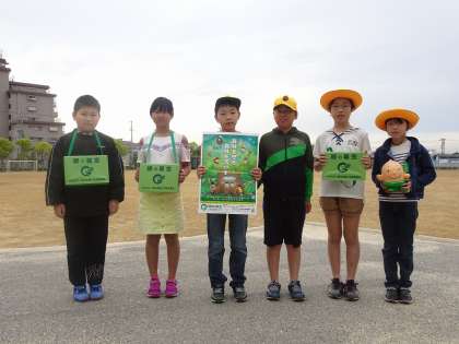 朝、昇降口前で、園芸委員会のみなさんが「緑の羽根の募金活動」を行っていました。