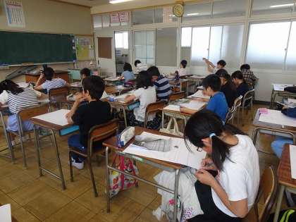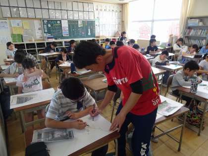写生画の絵を描いています。先生のアドバイスを聞いて、よりよいものにしようと真剣に取り組みました。