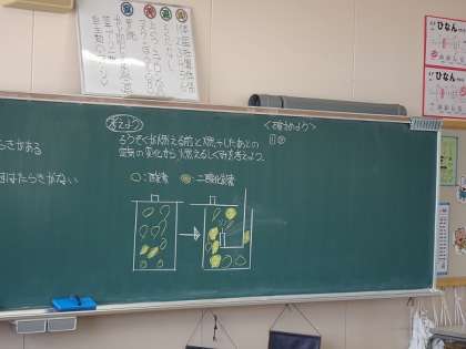 理科の授業では、「ものの燃え方」について実験したり考えたりしたこともとまとめる学習を行いました。