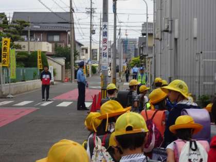 今朝、いつもの見守り隊や立ち番活動の方、職員に加えて、警察や地域の方々も加わって、交通安全の運動が行われました。ありがとうございました。