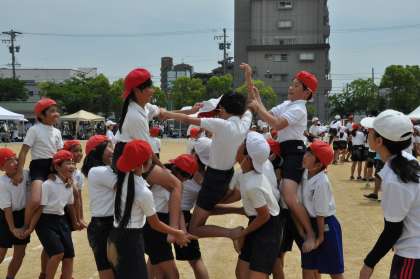 5年生は、はじめての騎馬戦です。騎馬と騎手が息をぴったり合わせて、果敢に戦いました。どの騎馬も、精一杯力を尽くして戦いました!