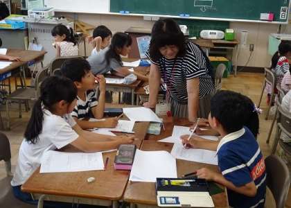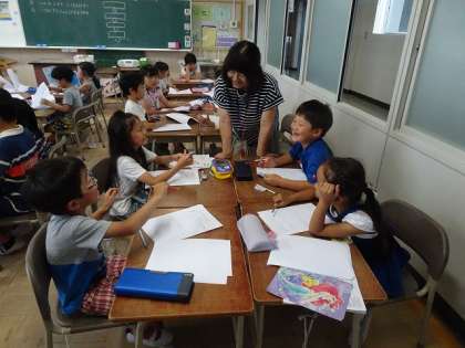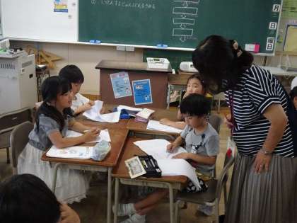 「まちたんけん」に向けて、班ごとにだれが、どんな質問するかなどを考えていました。
