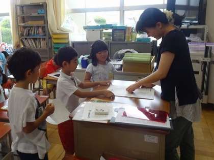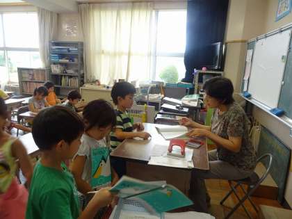 先生といろいろ話をしながら、宿題などの点検が行われていました。