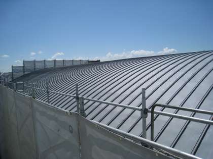 夏休みも残り1週間となり、運動場工事と同時に屋内運動場工事も順調に進んでいます。赤色だった屋内運動場の屋根は、現在塗り替え作業の真っ最中です。内部工事も順調に進んでおり、12月上旬ごろにはお披露目できる予定です。