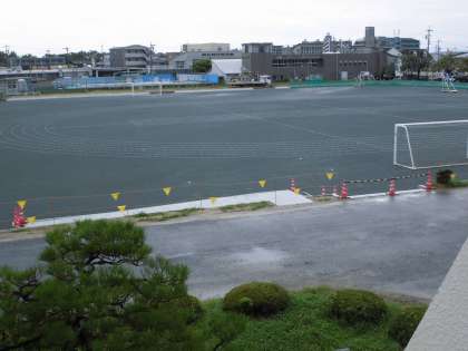 末広小のみんな元気かな?今日は雨が降っていますが、ごらんのとおり運動場がきれいになったよ。あと少しで完成します。まだまだがまんですが、始業式のあとに、先生たちから「もう、運動場で遊んでもいいよ。」の連絡があるまで待っていてくださいね。新しい運動場で、みんなが元気に走り回るのを楽しみにしています。