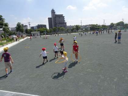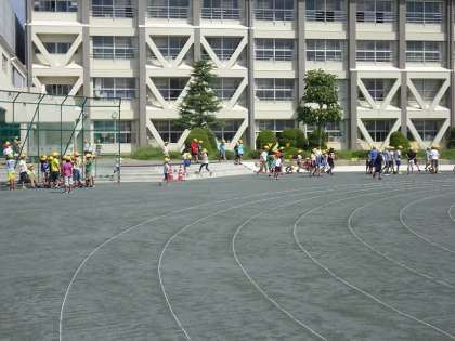 待ちに待った運動場。中間放課には、多くの子どもたちが運動場に飛び出し、思い思いに遊んでいました。