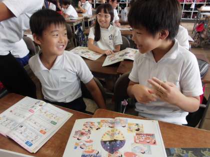 英語活動がありました。チャンツで楽しく身体を動かした後、1日の生活の流れに沿って時間の表し方の学習を行いました。友達と会話文の練習を意欲的に行うことができました。
