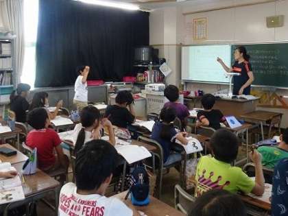 教科書の資料を読み、隣同士で一番驚いたことを伝え合っていました。