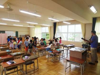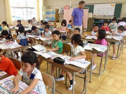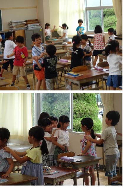 授業の終わりでは、先生のギターの演奏に合わせて、ジャンケン列車で、歌い踊りながら、楽しく過ごしていました!