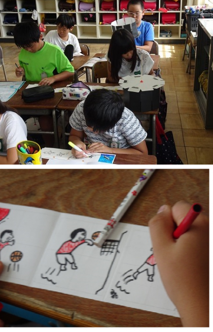 5年生の図画工作では、「コマコマアニメーション」という作品作りをしていました。