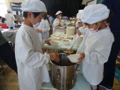 当番の子どもたちが、協力しながら自分の責任をしっかり果たしていました。