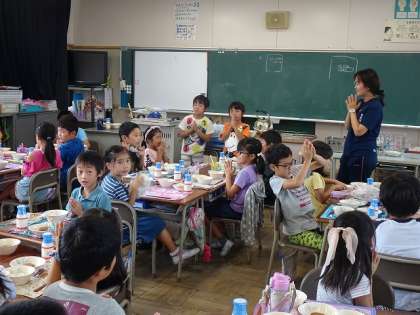 準備ができて、みんなで「いただきます!」をして、おいしく給食をいただきます。