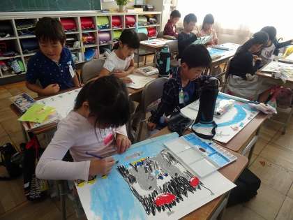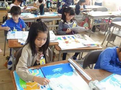 秋の校外学習で行った「名古屋港水族館」の思い出の絵を黙々と描いていました。