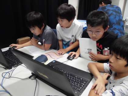 「ごんぎつね」のプログラミングを行いました。今日は、4年生の子ども達どうしで学級を超えて学び合いをしました。プログラムの組み方や保存の仕方など、「ヘルプ」の声があがると質問に答え、共に考えます。意見を出し合いながらプログラムを進める姿から学び合いの楽しさが伝わってきました。