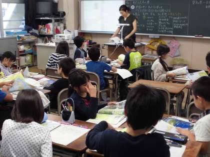 4年生は社会科の授業で、愛知県は全国の中でどんな役割を果たしているかを学びました。地図帳を使い、特産品や主な農作物について、グループで協力して調べることができました。