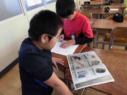 5年生は、学習発表会で行う「ビブリオバトル」の準備を進めています。グループで一冊、お気に入りの本を選び、その魅力を伝えます。上手く伝わるよう、様々な工夫をし、練習しています。