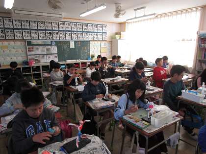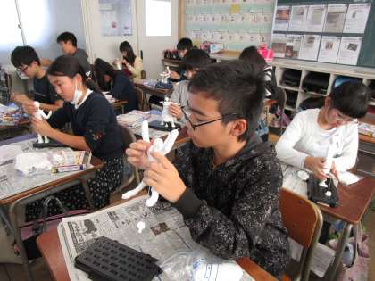図工の時間に、将来の自分を想像しながら紙粘土で立体作品を制作しています。どの子も集中して制作に励んでいます。自分の夢を形にすることで、実現への一歩にしてほしいと思います。