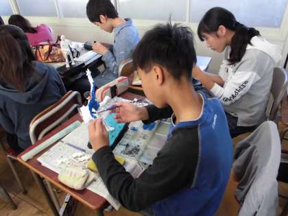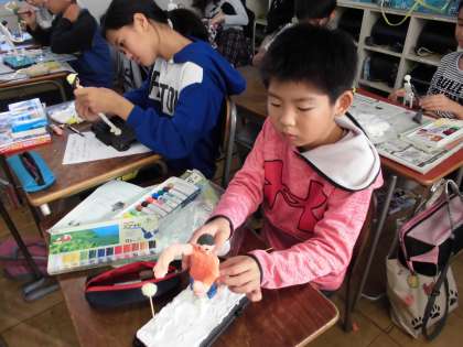 6年生は図画工作で、将来の自分の姿を粘土で表す「12年後のわたし」に取り組んでいます。集中して粘土と向き合い、スポーツ選手など将来の夢を形にしていました。