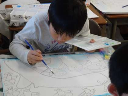 クレバスの線を生かしながら、水彩絵の具を使って、一生懸命に表現していました。