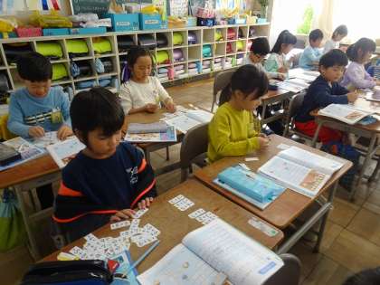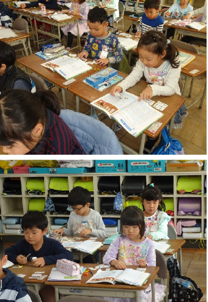 たくさんのカードから、答えが同じになるものを一生懸命に選んでいました。