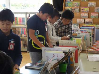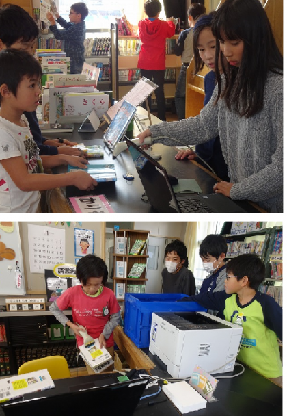 中間放課には、図書館で本の貸し出しや返却が行われています。
