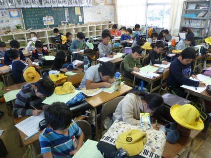 面談の時間に、漢字のスキルアップを目指して、漢字プリントに取り組んでいました。間違えたところを調べたり、書き直したりしてしっかりと取り組んで絵いました。目指せ満点!!