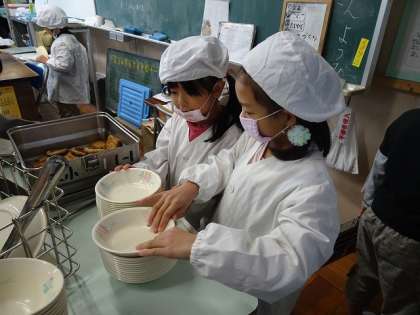 1年生の給食当番の様子です。