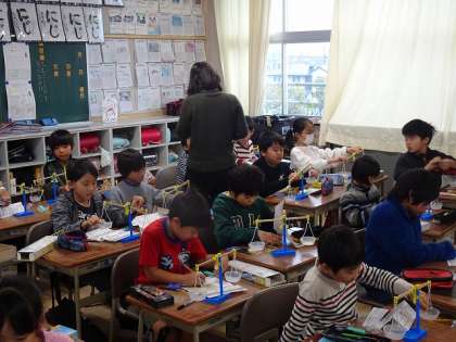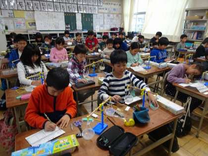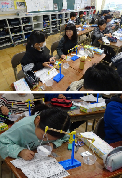 身近な物を使って、いろいろ実験し、記録をとって調べていました。