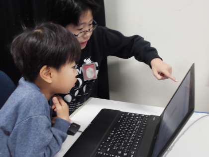 ペア学年でプログラミングの学習を行いました。2年生が国語で学習した「お手紙」の物語の中心人物 がまくんの心情の変化を心情曲線に表し、動き、色、音をつけたプログラミングに挑戦しました。4年生は、これまでに修得した知識と技能を基に一生懸命ペアの友達に教えました。お互いに集中して充実した時間を過ごすことができました。次回、完成を目指してがんばります。