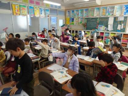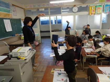 1年生の国語では、「じどう車くらべ」の単元を学習していました。