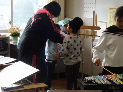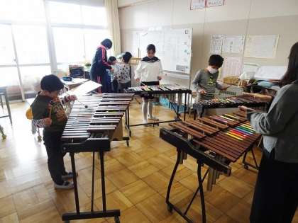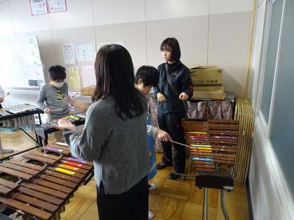 あすなろ学級では、12月17日(火)に開かれる「クリスマス会」に向けて、中間放課にみんなで合奏の練習をしていました。一生懸命にリズムを合わせていました。