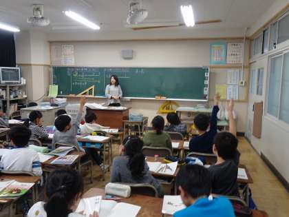 「分数の大きさくらべをしよう」というめあてで授業が行われていました。