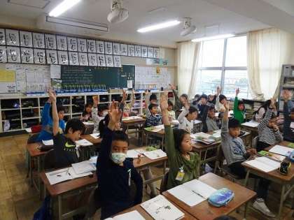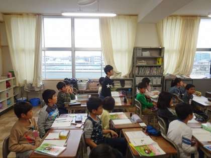 分母が同じで分子が違っている2つの分数について、どちらが大きいか、分数の意味を基に理由を考えていました。