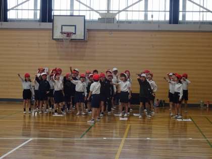 屋内運動場で、2年生が学年レクリエーションを行っていました。