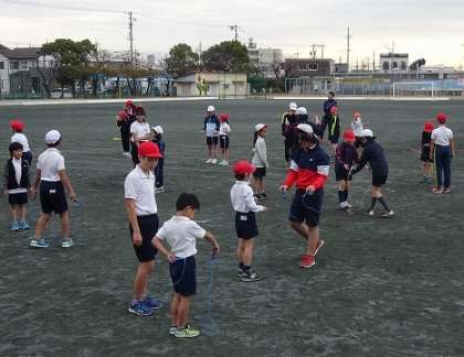 授業の終わりに、合同でなわとびの授業が行われていました。