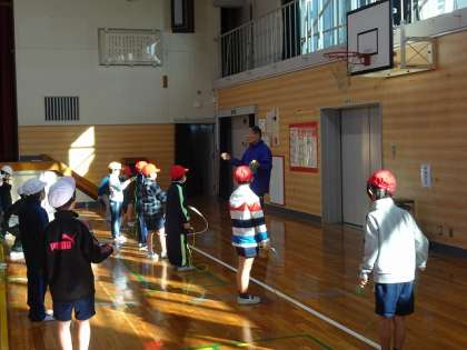 先生からいろいろな技の指示がテンポよくだされ、子どもたちは、楽しそうに挑戦していました。