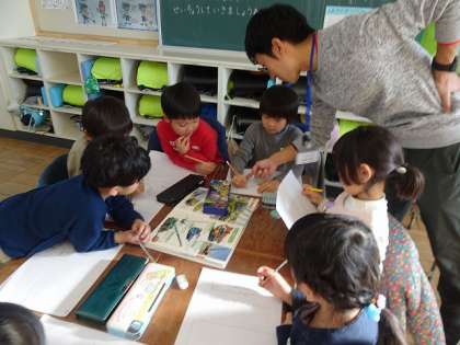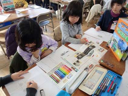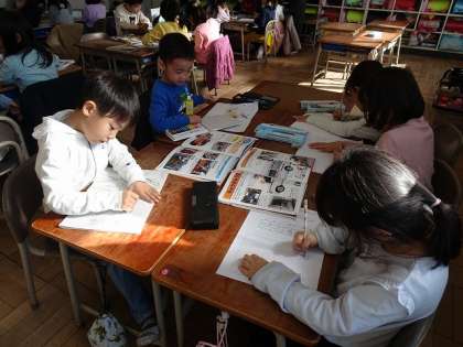 文章とともに、絵も描いていました。みんなで楽しそうに学んでいました。