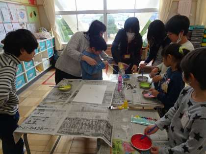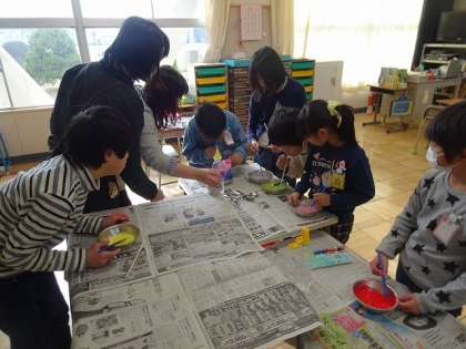 1月31日(金)から一宮スポーツ文化センターで開催される「一宮手をつなぐ子らの教育展」に向けて、みんなで作品作りが進められていました。
