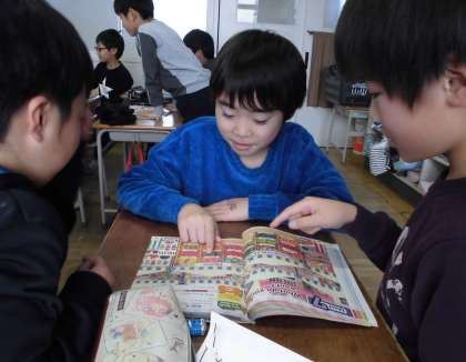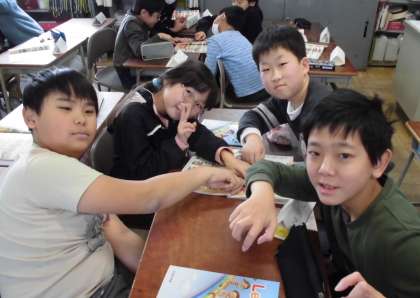 英語の時間の様子です。 「What do you want?」の会話文の練習をしました。教科書の挿絵を見て、グループで楽しくゲームしながら学習することができました。