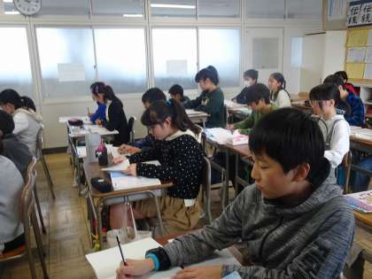 落ち着いた雰囲気の中で、長さ、面積、体積などの単位の総復習をしっかり行っていました。