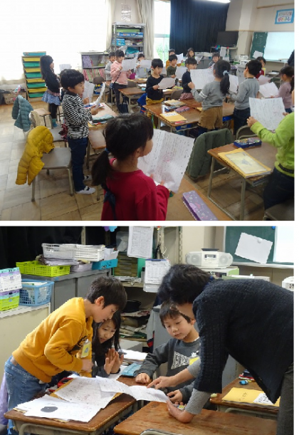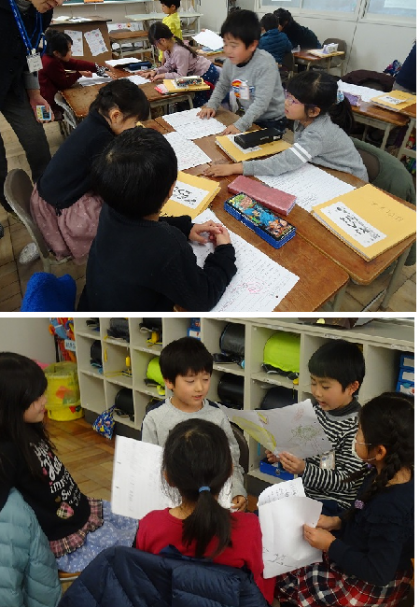 班ごとに、自分の考えを伝え合っていました。
