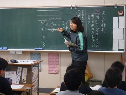 「ありの行列」という単元を、授業プリントを使って学習していました。