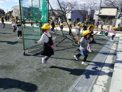 本日、全校で中間放課に取り組む「リズムなわとび」の最終日でした。