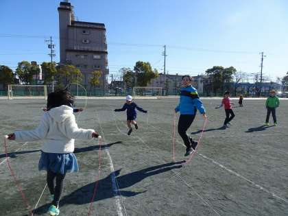 少し肌寒い中でしたが、子どもたちはリズムに合わせて、いろいろ技に挑戦していました!