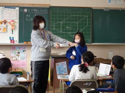 「はこの形をしらべよう」というめあてで授業が行われていました。